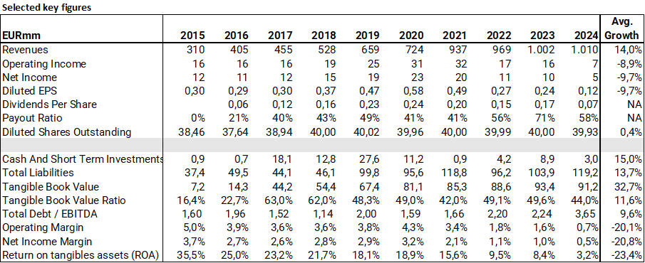 Overall, the market headwind and internal issues have made it extremely difficult for Kamux to make a turnaround. Kamux has downgraded its expectations twice in 2024, and guidance for 2025 is to improve margin. However, if it is possible to maintain their long-term target of 4% and increase revenue, the stock could be extraordinarily cheap compared to other stocks.